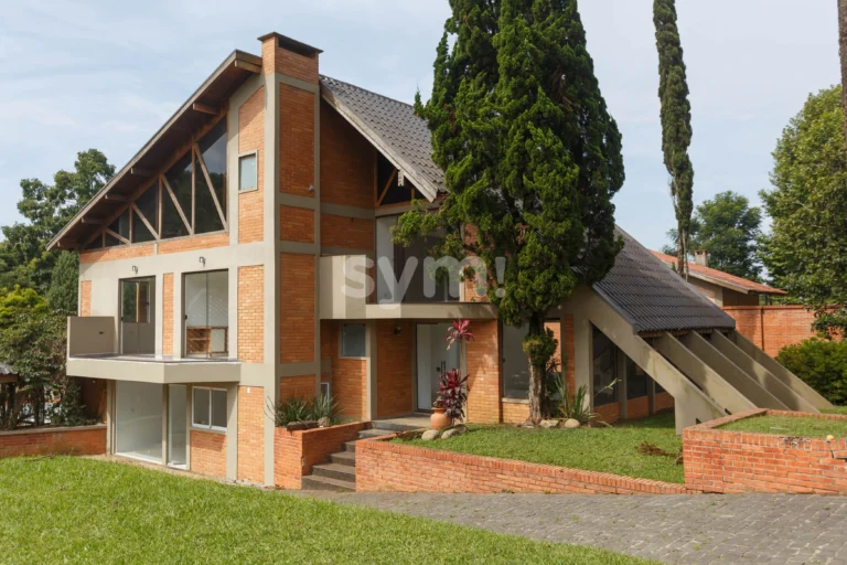 Uma casa imponente de estilo rústico, rodeada de natureza, destaque central em um terreno de mais de 2000m2.